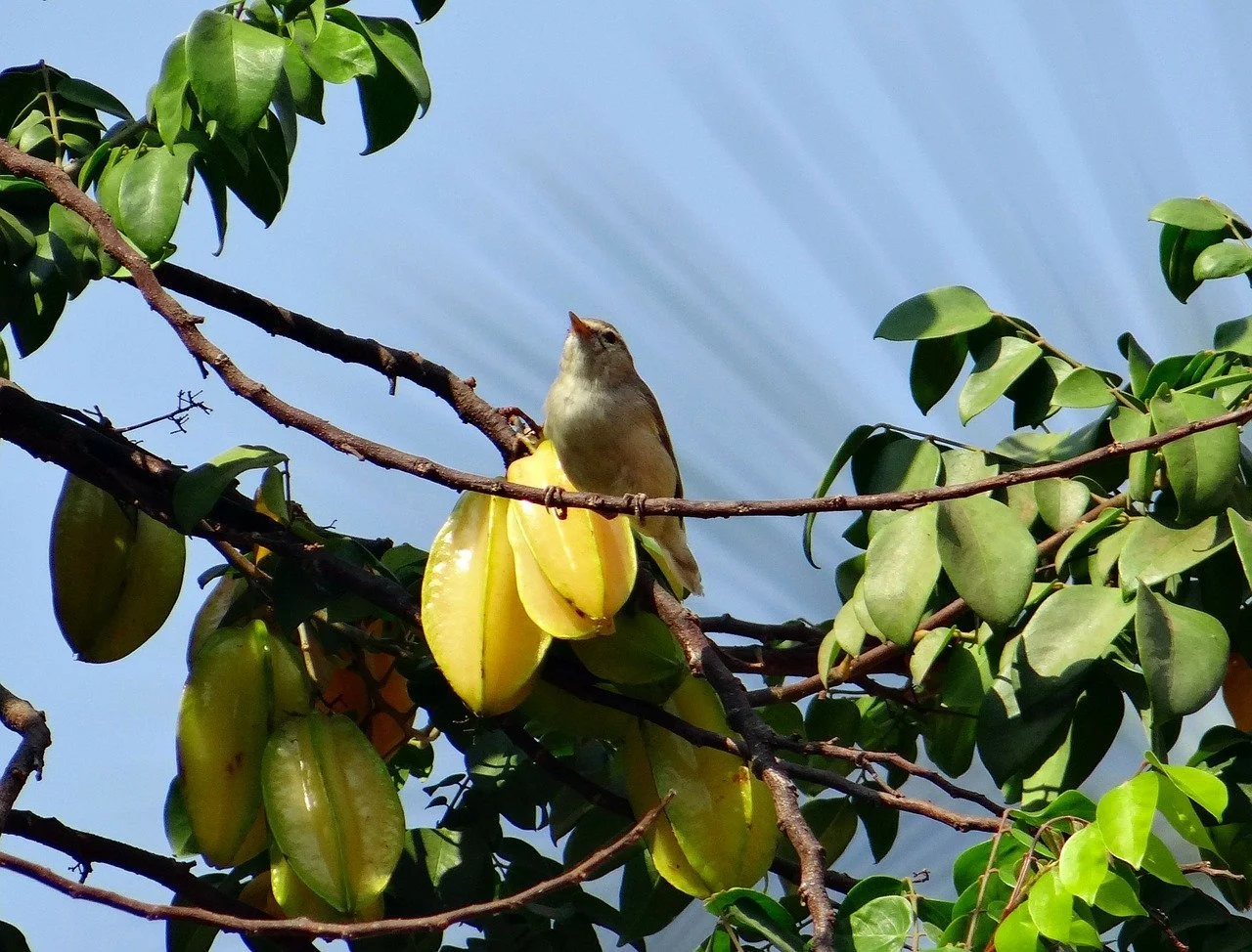 Fruit is eaten raw. The fruit is crisp and juicy with a waxy yellow skin when ripe. The best forms are delicious on their own, they also go very well in fruit salads, juiced and mixed with other fruits etc. The fruit flavour is enhanced by peeling off the ‘wing’ edges, which removes most of the oxalic acid. Flowers are eaten raw. An acid flavour, they are added to salads. Leaves are eaten raw or cooked.