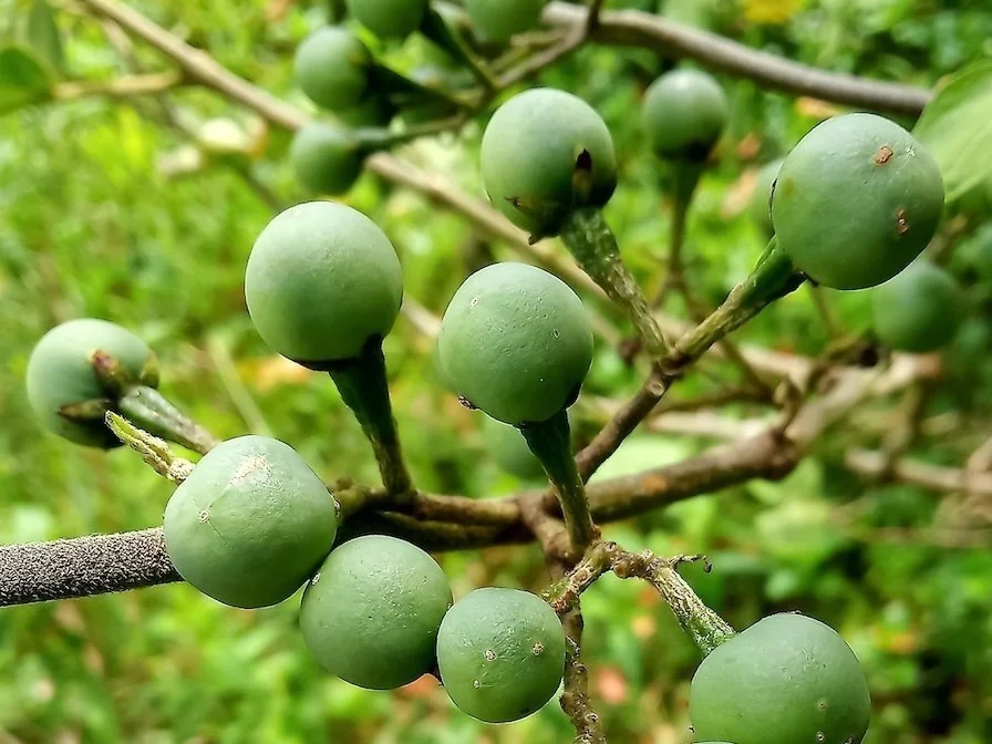 The fruits are edible, either raw or made into jams, sherbet, jellies, juice, tarts, puddings, etc. They are juicy, almost odourless, with a pleasant, slightly bitter, astringent taste. These rare fruits are extremely nutritious and beneficial for people who have diabetes.