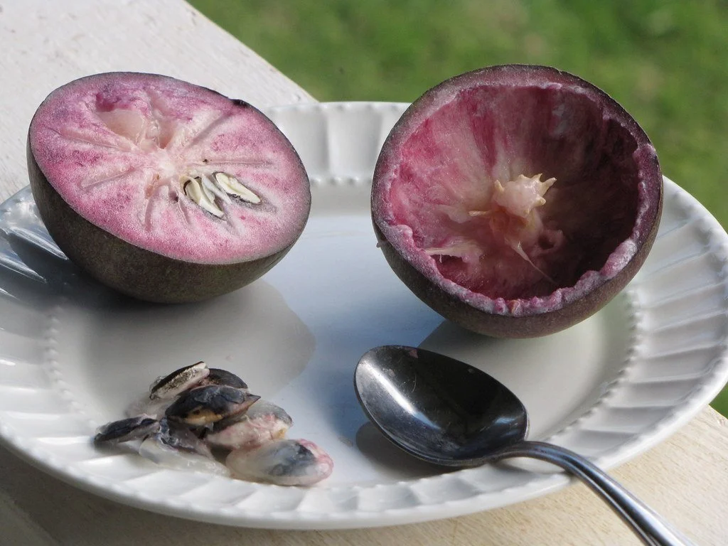 Yellow in colour, the fruit is sweet, unctuous, soft. It can be savoured fresh, although it can also be used to prepare ice cream or sorbets. Its taste is reminiscent of anona or cherimola (Annona cherimola), with notes reminiscent of banana, coconut, peach or pear!