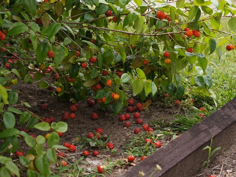 The edible fruit is a botanical cherry. The taste ranges from sweet to sour, depending on the cultivar and level of ripeness (the darker red to black range is quite sweet, while the green to orange range is strikingly tart). Its predominant food use is as a flavoring and base for jams and jellies. The fruit is high in vitamin C and a source of vitamin A. The leaves are used as a substitute for tea.