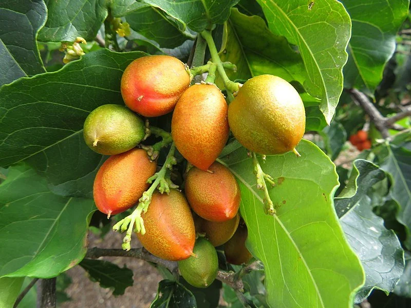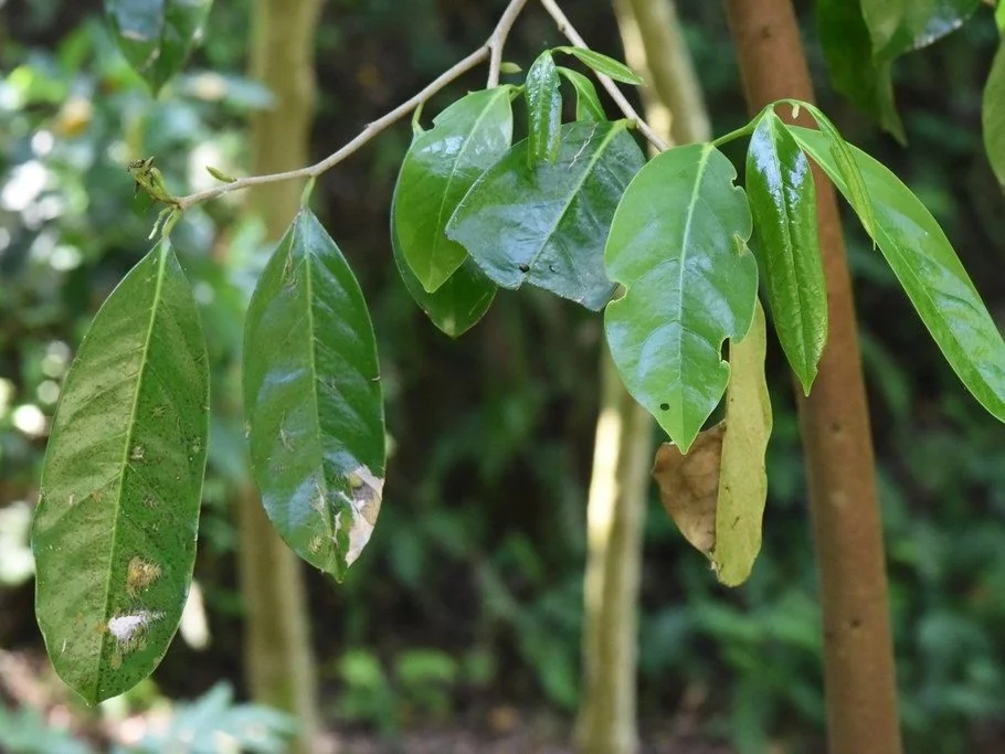The aril-like translucent subacid white pulp has an excellent flavour, suggesting that of the mangosteen. A highly prized fruit, usually eaten fresh but also makes an excellent jam. The ovate fruit may be 32 - 40mm long, with an orange-yellow, pliable, leathery, tough skin, 3mm thick that is easily removed.