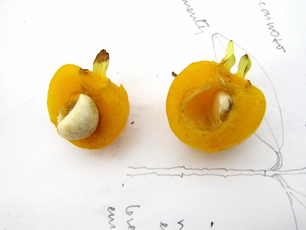 Sweet and aromatic with the flavour of apricots. They can also be made into jellies, jams, pies, cakes etc. The fruit is very fibrous but is also very nice. The seed contains up to 45% of an edible oil, it is used mainly for margarines.