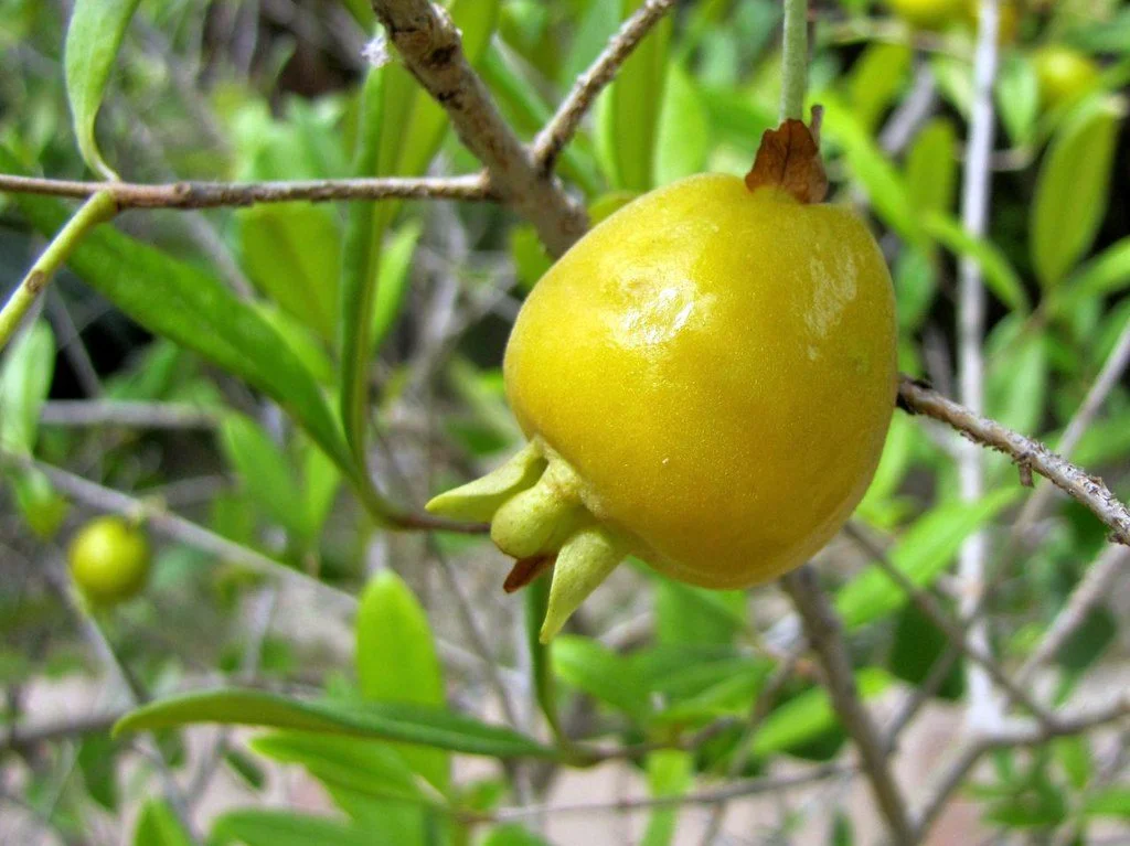 The fruits have a thick, very succulent pulp with a sweet or acid flavour. The yellow, aromatic fruit varies in shape from globose to pear-shaped. Due to acid taste, uvaia fruits are usually consumed in the form of juices, vinegars, beers, liqueurs, jellies, sweets, yogurts and ice cream.