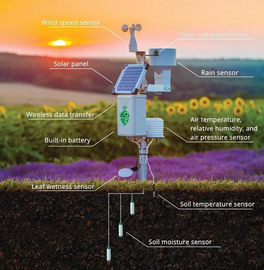Meteobot automatic weather stations offer excellent value for money and are very user-friendly (all is controlled on your mobile phone). Our station allows us to know exactly the amount of rainfall, calculates precisely the evapotranspiration, gives a precise indication of the soil moisture at different depths, and others. It also allows us to set up alarms (in case of light frosts, strong winds, high temperatures, water deficit, etc).