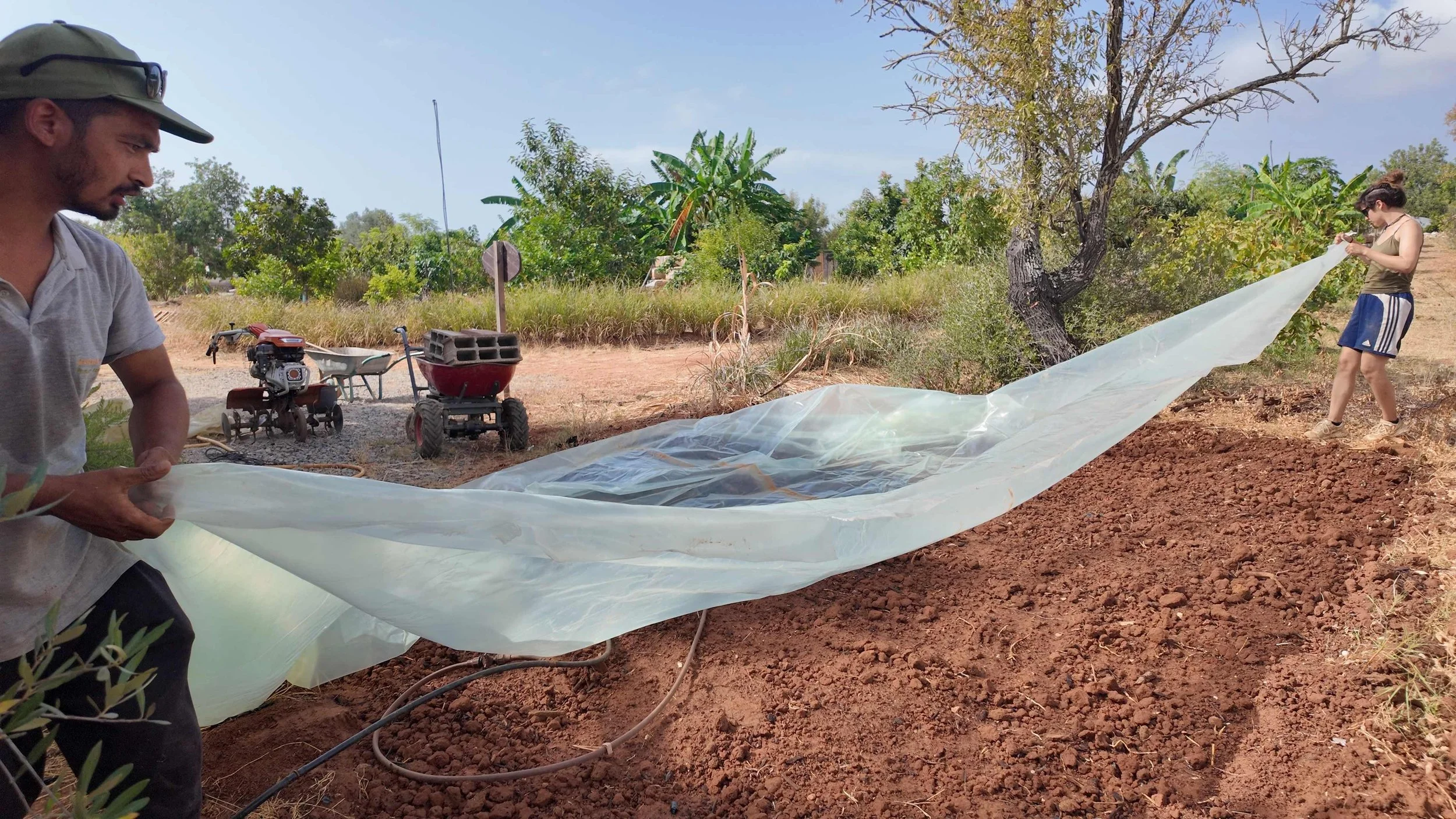 Completing a soil solarisation at the Orchard of Flavours Botanical Garden, September 2024.